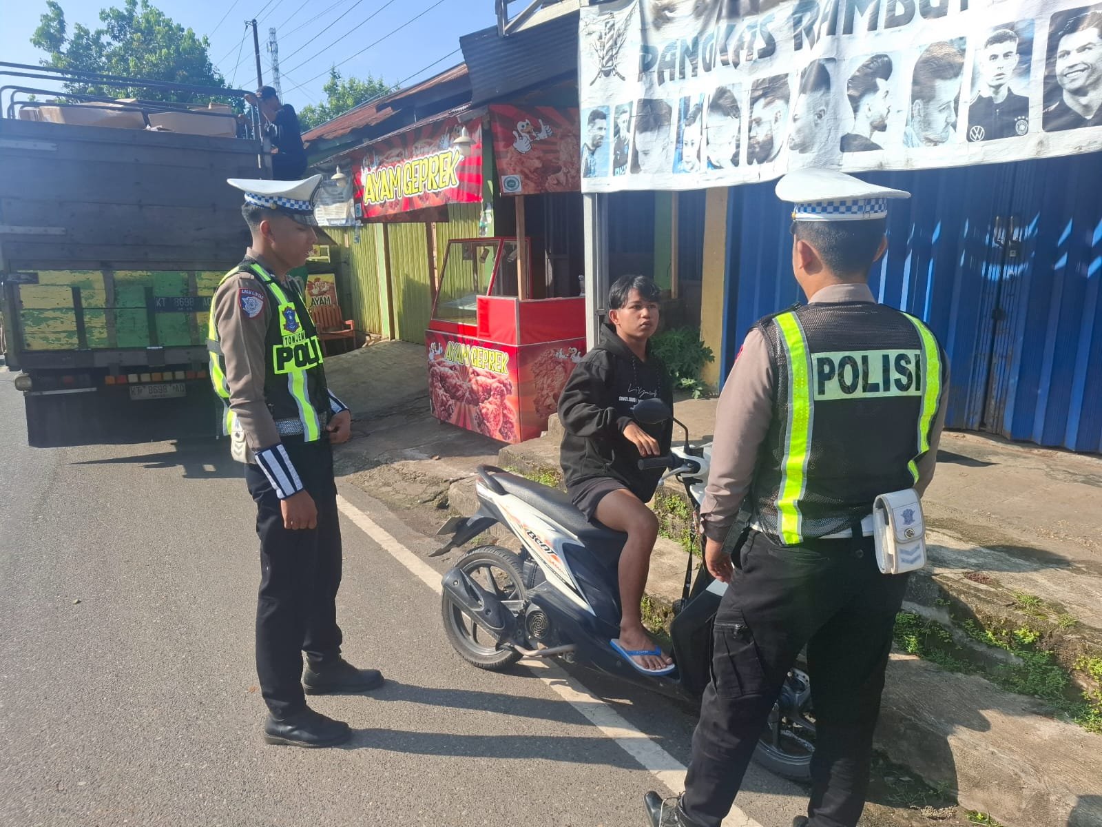 Petugas kemudian memberikan teguran secara humanis serta edukasi terkait pentingnya keselamatan berkendara.