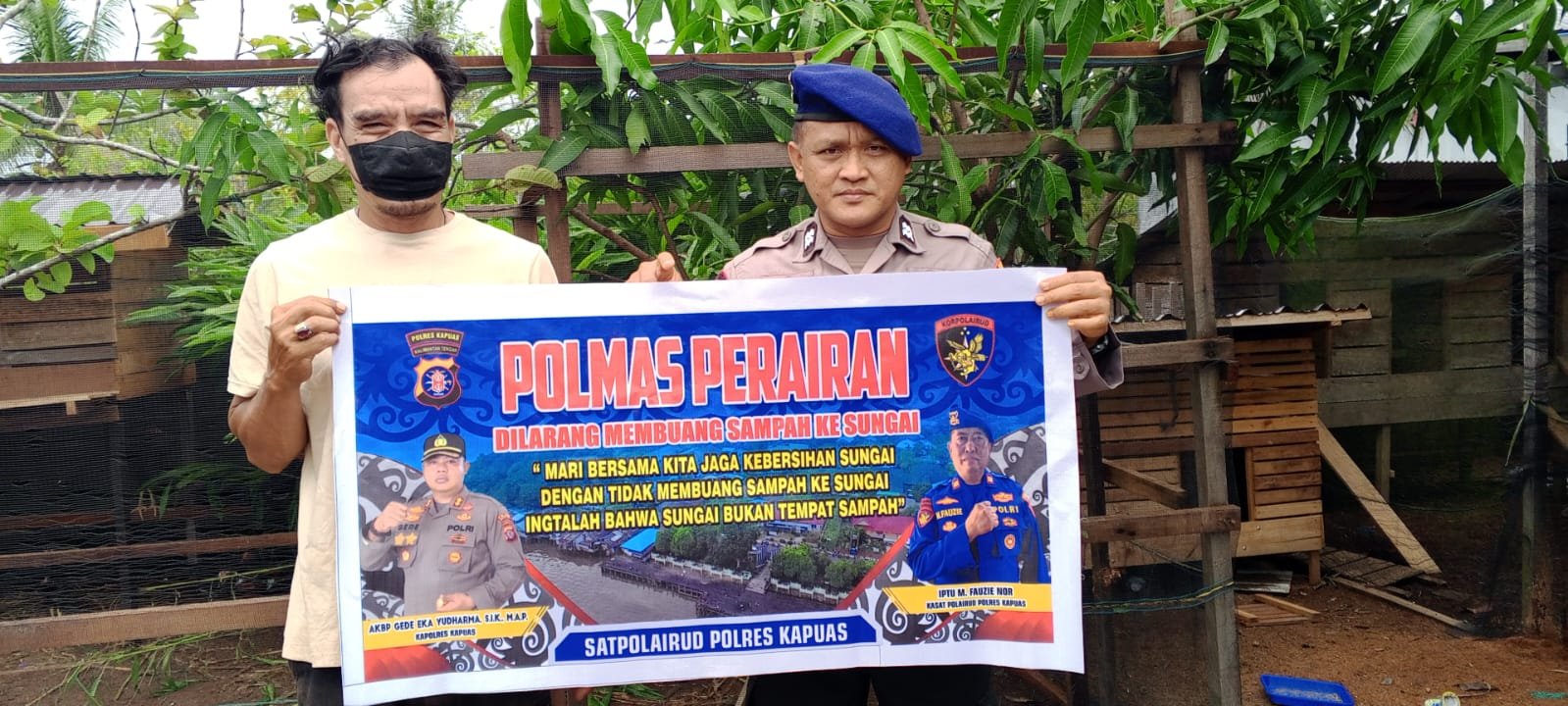 Satpolairud Polres Kapuas jajaran Polda Kalteng imbau masyarakat agar tidak membuang sampah ke sungai kabupaten Kapuas, Kalimantan Tengah, Selasa (24/2/2026) Pagi.