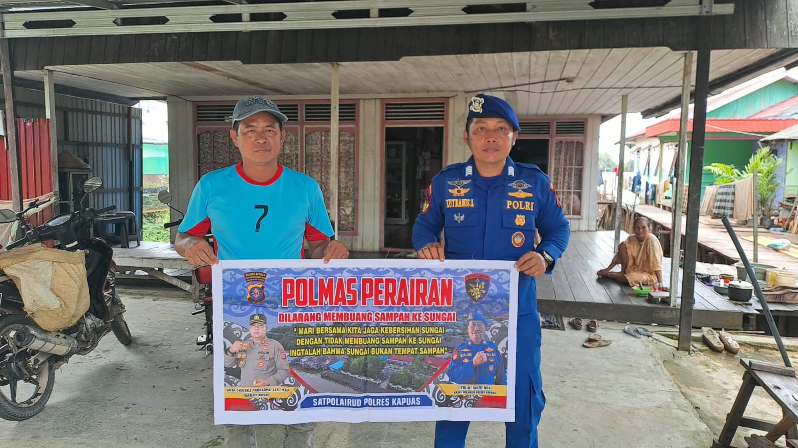 Satpolairud Polres Kapuas jajaran Polda Kalteng imbau masyarakat agar tidak membuang sampah ke sungai kabupaten Kapuas, Kalimantan Tengah, Kamis (26/2/2026) Pagi.