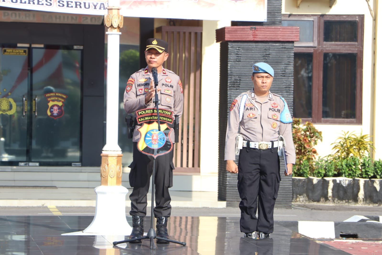 Polres Seruyan – Senin, 25 Agustus 2025, pukul 07.30 WIB, halaman Markas Komando (Mako) Polres Seruyan menjadi saksi pelaksanaan apel pagi yang dipimpin langsung oleh Wakapolres Seruyan, Kompol Hendry S.E. Apel ini dihadiri oleh para Pejabat Utama (PJU) serta seluruh personel Polres Seruyan. Kegiatan diawali dengan pengucapan Tribrata dan Catur Prasetya sebagai pengingat akan tugas dan tanggung jawab sebagai anggota Polri.