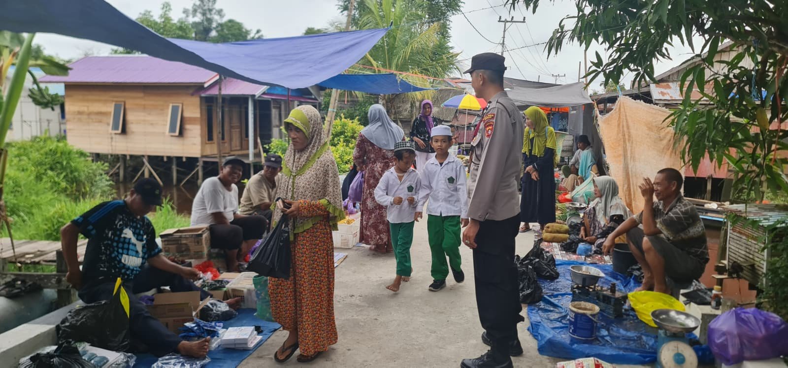 Kegiatan rutin personel piket Polsek Pulau Petak dalam patroli kali ini menyambangi pasar mingguan yang berada di Desa Sei Tatas Hilir Kecamatan Pulau Petak.